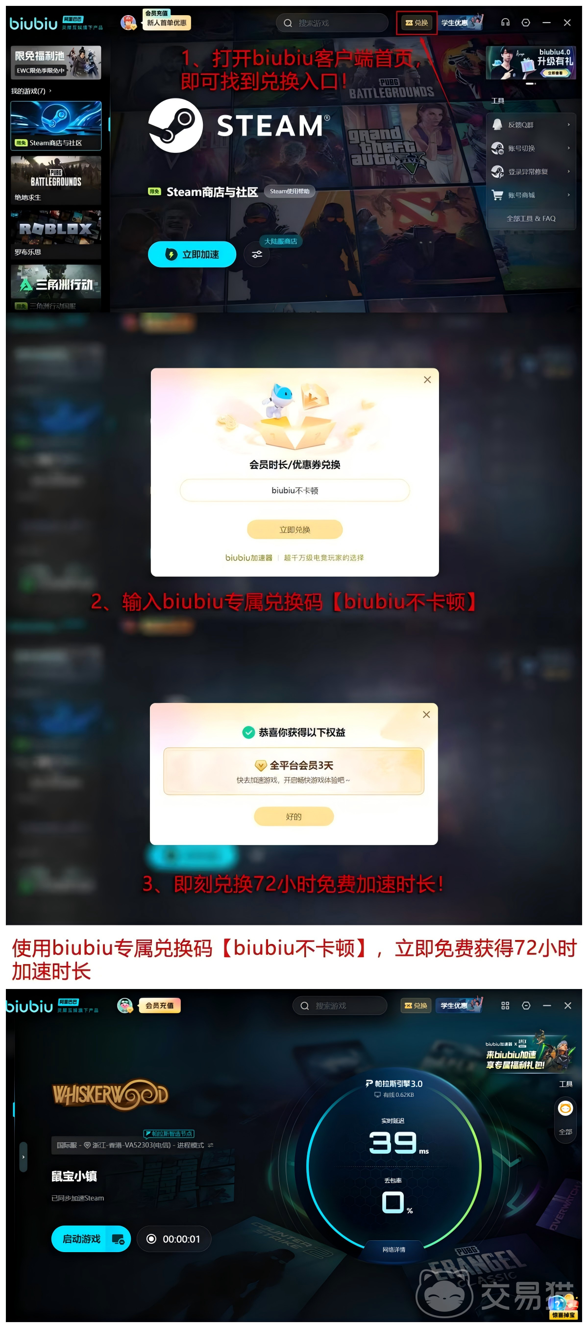目前注册用户可输入【biubiu不卡顿】领取三天免费加速时长,每位首次使用的玩家均可激活此福利,新用户还可额外获赠24小时,总计可达96小时免费体验时间,让玩家充分感受高速网络带来的无延迟操作优势,轻松畅玩各类在线内容。