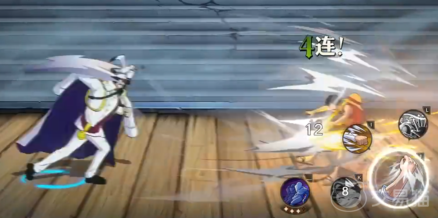 被动技能方面,被动1允许战国在任意技能前划动普攻,消耗1个奥义点变身为大佛形态;首次变身后的下一次形态转换将自动进入金刚体状态,无需额外消耗资源。若金刚体成功格挡敌方攻击,还能返还1个奥义点。新手可通过角色背后的光晕状态判断是否处于金刚体防护中。被动2的效果则体现在对抗海军援护时——当敌人召唤援护协助作战,该单位不会立即进攻,而是先执行敬礼动作,为战国争取反应时间。