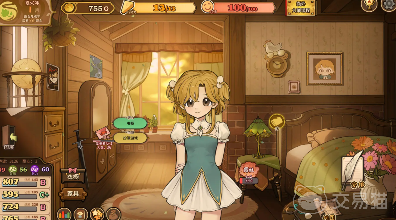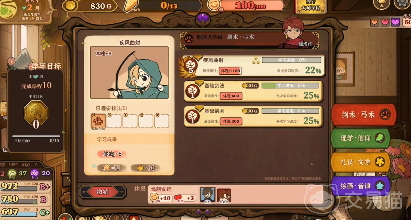你可以为她报名剑术课程,锻炼体魄;也可以送她前往占卜台学习神秘知识,提升智力;此外,耕种、烹饪、钓鱼、飞镖等休闲活动同样不可或缺,这些小游戏不仅能增进亲子互动感,还能有效提高女儿的各项属性值。