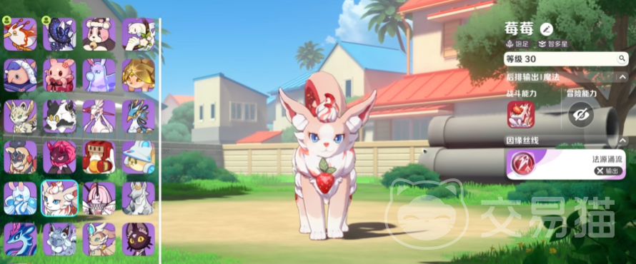 莓狸狸在游戏中属于“饱足”元理体系,身高为95cm,特性为“智多星”,技能释放时消耗58能焦。其整体造型宛如一只散发着草莓香气的小狐狸,周身点缀着丰富的草莓装饰,头顶还戴着类似草莓果酱冰淇淋的发饰,在战斗中释放技能时常伴随蛋糕投掷类特效,视觉表现十分讨喜。