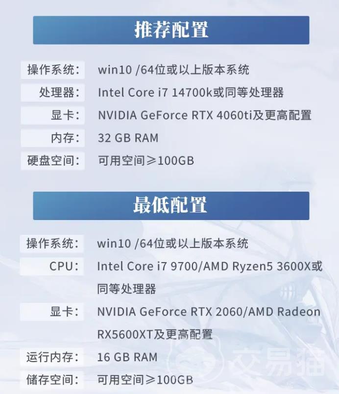 内存最低要求为16GB RAM,该配置能满足大多数常规游戏运行需求,但在复杂场景切换或多任务并行时可能存在轻微卡顿。无论选择何种配置,均需保证至少100GB的可用硬盘空间。