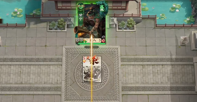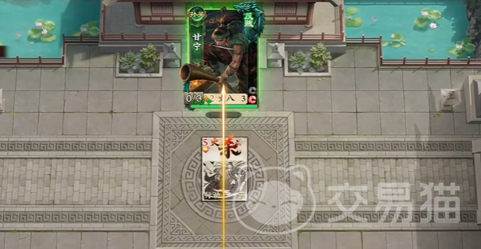 第49关:起手发动【火烧连营】技能,再对甘宁使用【过河拆桥】,清空其手牌。此时关羽处于无牌且仅剩1点体力的状态。紧接着对甘宁使用【顺手牵羊】,夺取其一张关键牌后立即对其使用【杀】,快速结束战斗取得胜利。