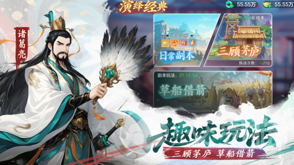 本作以经典三国为背景,融合卡牌策略与实时动作玩法,玩家可招募如诸葛亮、赵云等知名武将,并根据其特性搭配不同的技能卡组。例如,高机动性的赵云适合配备突进型伤害技能;擅长远程控场的诸葛亮,则推荐搭配具有减速效果的技能卡;而拥有高额爆发输出的关羽,更适合装备范围性攻击类卡牌。战前需合理规划卡组配置,战斗中则通过手动操控角色走位与释放时机,积满能量后释放大招,往往能在关键时刻扭转局势,带来丰富的战术变化与对战乐趣。