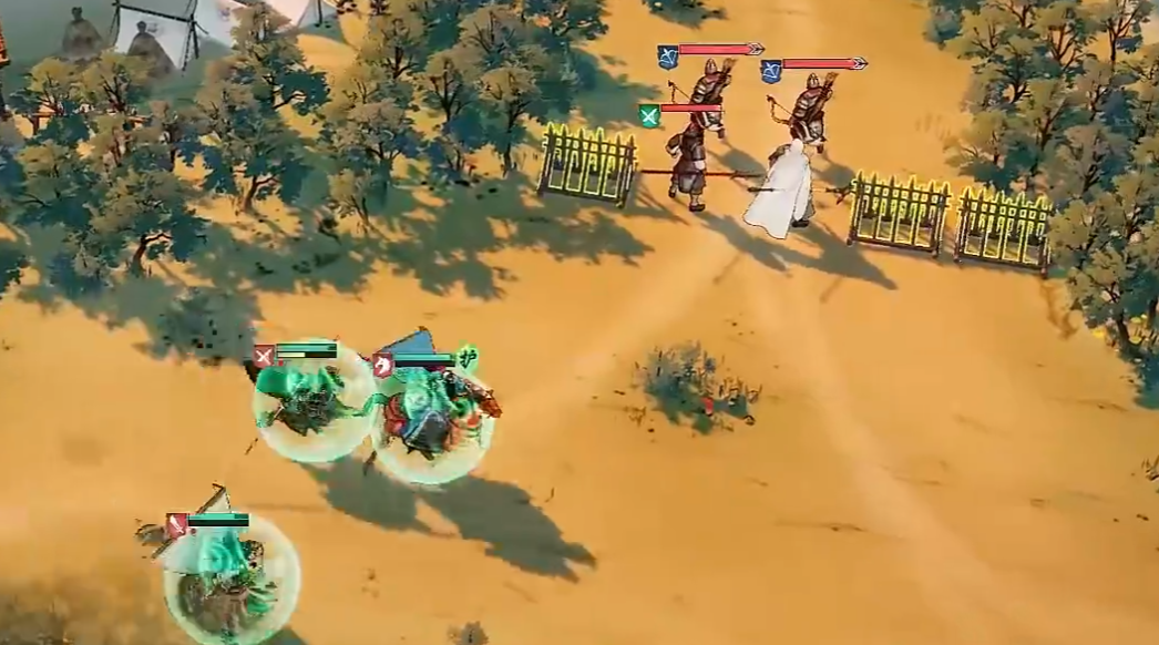 战斗开始后,需优先清除营帐外围的敌方小兵以推动剧情发展。在此阶段,建议采取先手辅助压血的策略:利用夏侯惇释放“横刀跃马”技能削弱敌方防御并附加受伤加深效果,随后由关羽进行致命打击。