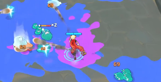 相较于其他角色,依莱娜的攻击覆盖范围更具优势,一次技能释放可同时打击多个目标,清敌效率极高。这一特性使她在地图颜料铺设阶段表现尤为突出,能迅速扩大己方领地,从而加快分数积累速度,提升整体胜率。