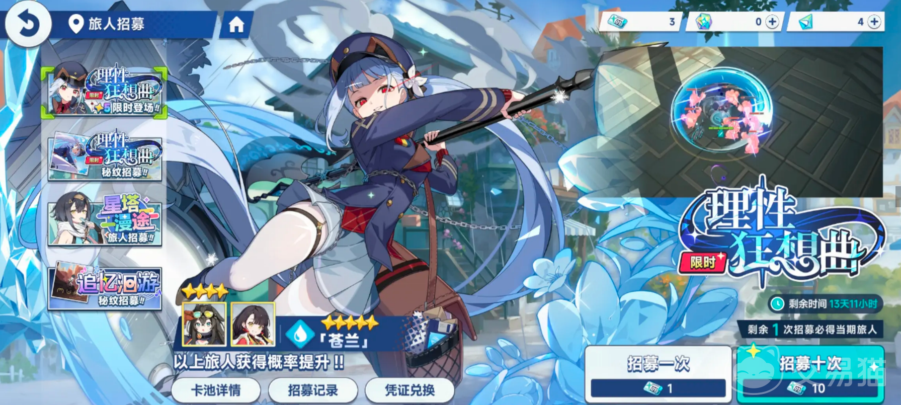 限时卡池则聚焦于特定时期的稀有角色,通常包含只能在此期间获取的限定五星角色。该卡池消耗“青空礼券”,可通过任务或活动获取。同样拥有1.6%的五星基础概率,并设有独立计数的保底系统——每累计160次抽取,必定产出一名五星角色。值得注意的是,当抽中五星时,其中有60%的概率为本期UP角色;四星角色中也有50%的概率为当前限定四星。这使得限时卡池成为获取专属角色的核心渠道。
