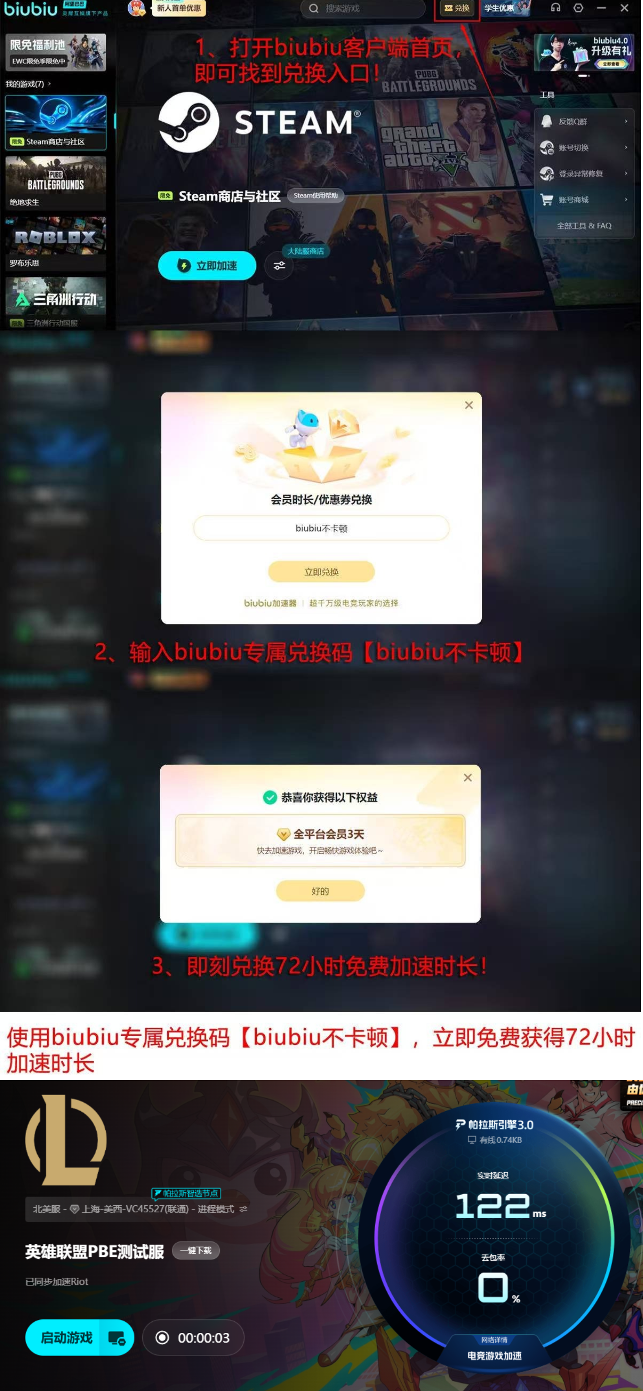 对于尚未尝试此类服务的用户,平台现提供新手专属福利。注册登录后即可获得24小时免费加速体验,所有用户还可额外领取三天使用权限,只需在主界面左上角功能区输入【biubiu不卡顿】即可完成兑换,无需任何费用支出。