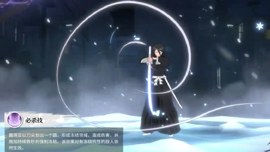 朽木露琪亚并非单纯的输出型角色,而是一位兼具高伤害与强力控制机制的战术核心。她能够在持续输出的同时施加冻结状态,通过技能叠加冻结值来触发控制效果,从而实现战场压制。