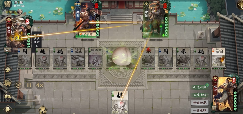 第二个技能“百步穿杨”是一项强力输出技,允许黄忠立即对指定目标使用一张【杀】,且此次攻击具备强制命中特性,目标无法通过常规手段闪避,极大提升了打击稳定性与威胁性。