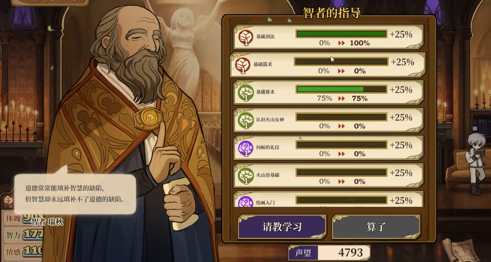 2、 智力属性主要依靠学习任务来提高。为女儿购置书籍并放置于书柜中,也能缓慢增加智慧值。除此之外,实际操作如烹饪练习,以及拜访智者对话互动,都是有效提升智力的途径。