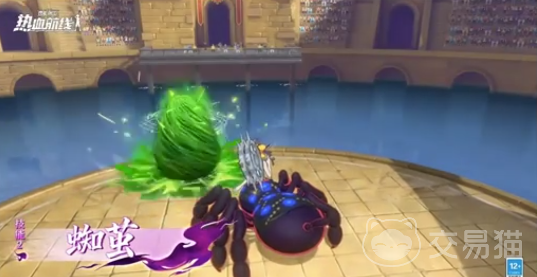 二技能包含两种释放方式:第一种为蓄力型技能,最多可储存三次蜘蛛茧,长按释放时一次性投出全部茧体,命中敌人后施加蛛网标记,释放完毕后进入15秒冷却;第二种为形态转换技,使用轮入道吸收火焰能量进入火焰状态,开启全新的技能表现形式。