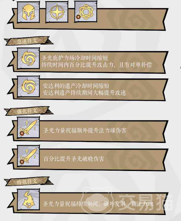 前期可先使用“夜影穿爆”应对群体敌人,待攻速达标后更换为更契合攻速机制的技能。威能技推荐“圣辉破晓”,也可根据实际情况灵活调整为被动类技能,带来意外增益。主宰技初期可用“暴雷领域”弥补群伤不足,后续直接升级为“狂暴”,不仅提供百分比增伤,还附带图腾辅助效果。守护技锁定“圣光力量祝福”,可同时享受神圣元素伤害加成与攻击力提升,结合特效符文与装备上的攻速词条,通过普攻频繁触发神圣法球,实现高效伤害叠加。建议贴身释放法球,使怪物同时承受最多4个法球的连锁打击,最大化输出转化率。