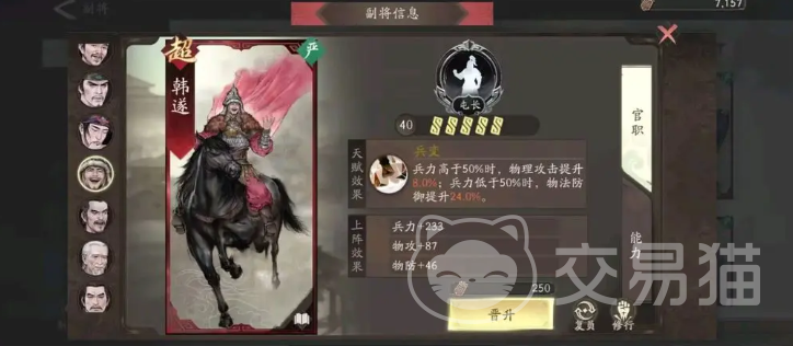 韩遂:以机动性和反击机制见长的副将。每当移动三格以上时,即可获得物理防御加成,有效应对骑兵类高速突击单位。其反击机制需在敌方主动攻击时触发,成功反制后可对攻击者造成15%的固定伤害。这一特性使得韩遂在防守反击型阵容中具备极高战略价值,尤其适合布阵于侧翼或后排队列中发挥牵制作用。