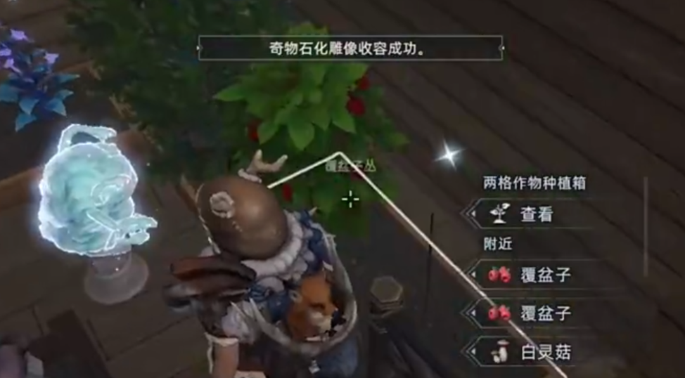 尽管击败Boss后会掉落石化雕像,但此时尚未完成收容。需在雕像周围依次放置覆盆子、鼠尾草、白灵菇、亚麻花、蓝莓菇和琉璃苣六种植物,并且必须将它们种入种植箱内,否则无法触发收容机制。