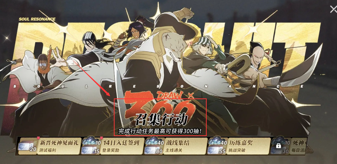 第一种方式是通过抽卡系统获取角色。游戏中设有新手卡池、普通卡池和限定卡池三种类型。其中,新手卡池对新人玩家尤为友好,累计抽取60次必定获得一名SSR级别的角色,且每次抽卡享受八折优惠。开服期间还会开启“征召行动”活动,完成指定任务可领取新晋死神见面礼及14日签到奖励,同时还能额外获得抽卡机会。