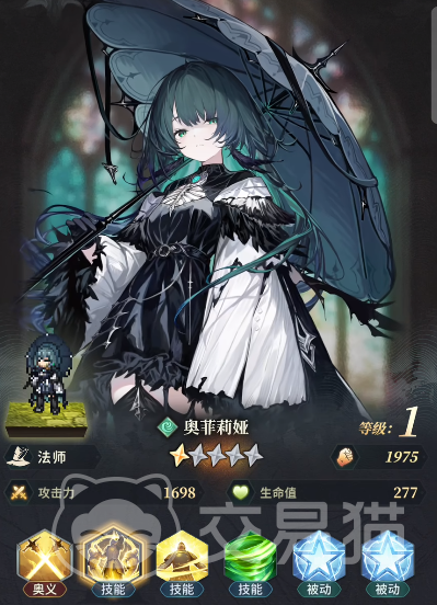 另一位同属五星评级的法师角色则以风属性为主导,其攻击力略高于奥菲莉娅,在实战中展现出更强的单体打击能力。该角色不仅能够造成稳定的风系伤害,还能为己方所有风属性单位提供增益效果。除了提升格挡率之外,其技能还附带一次无视敌方攻击的机会,当对手输出较低时可自动规避伤害,有效增强团队的续航与防御稳定性。
