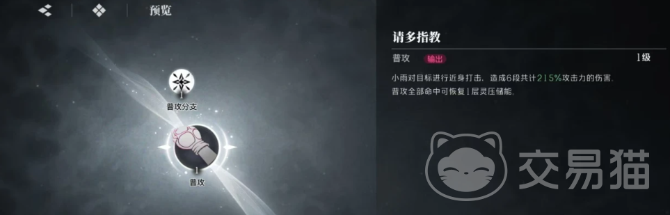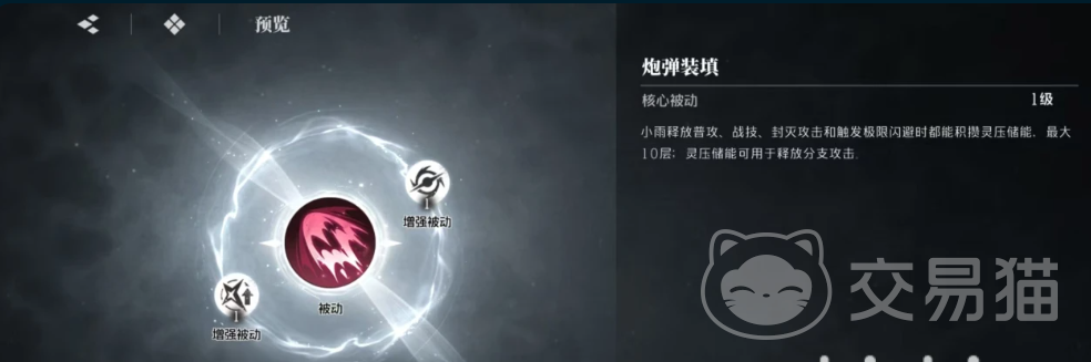 其核心被动技能名为“炮弹装填”,该技能使䌷屋雨在执行普攻、释放战技或封灭技乃至闪避操作时均可积累灵压,最多可叠加至10层。所储存的灵压可用于触发分支攻击,显著提升连招流畅度和输出节奏。另外两个被动均为增伤类强化效果,主要作用是提高自身的灵系伤害,并在敌人进入火焰区域时降低其攻击力与移动速度,形成有效的战场压制。