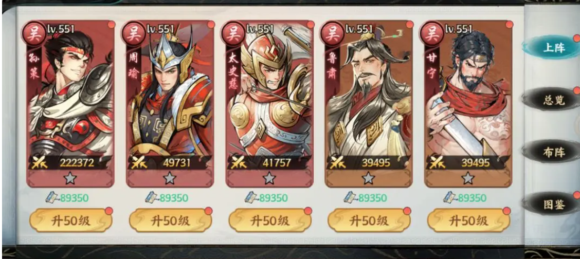 关于推荐阵容配置,魏国体系非常适合开荒阶段使用,由许褚、典韦、郭嘉、夏侯渊、夏侯惇组成的阵容拥有稳定的控制链和群体压制力,寒冰机制可有效延缓敌人行动节奏;蜀国阵容更适合已有一定养成基础的玩家,赵云、黄忠、关羽、马超、徐庶的搭配可在短时间内打出高额爆发伤害,适用于速战速决场景;吴国则偏向持久作战,太史慈、孙策、周瑜、鲁肃、甘宁构成的组合凭借灼烧叠加与技能衔接,在攻打扬州地图或参与国战时展现出持续输出优势。