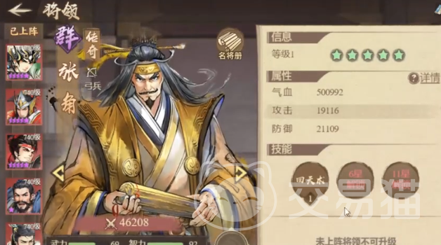 辅助位置推荐张角,尽管他是橙色品质武将,但功能性远超部分红色稀有武将。其一技能可为全体队友施加护盾,数值为自身最大生命值的7%加上1000点,大幅提升全队抗打击能力。更重要的是,张角具备主动施加麻痹的能力,能够有效衔接吕布的被动输出机制,最大化整个阵容的作战效率。