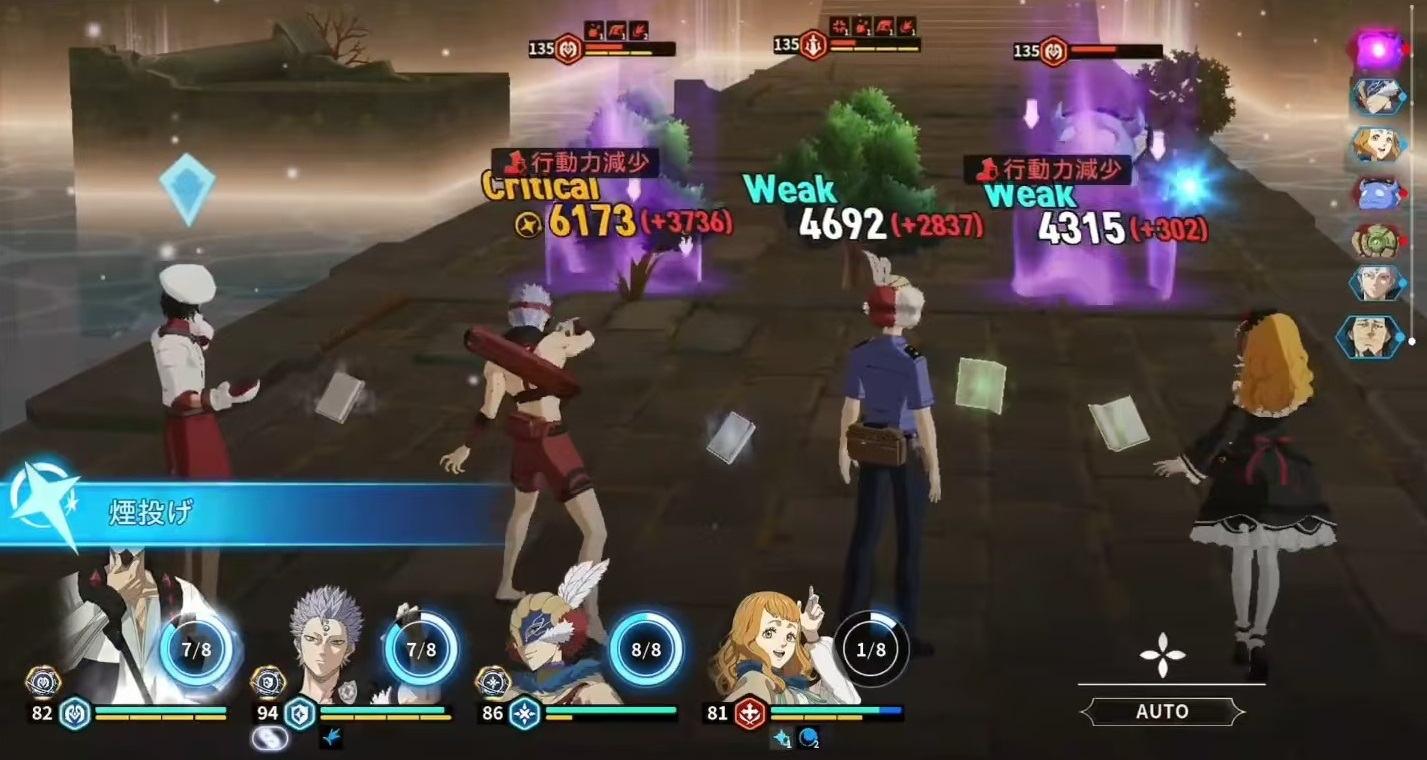 第二技能为范围攻击,能够打击全体敌人并随机附加出血、中毒、火伤等多种持续伤害状态,这些负面效果可持续两回合,有效提升全队的间接输出效率。第三技能同样作用于敌方全体,在造成伤害的同时施加出血效果,并为所有队友赋予高达50%的吸血能力。此外,该技能还可选定防御属性最高的友军,使其最大生命值提升30%,进一步增强前排生存能力。