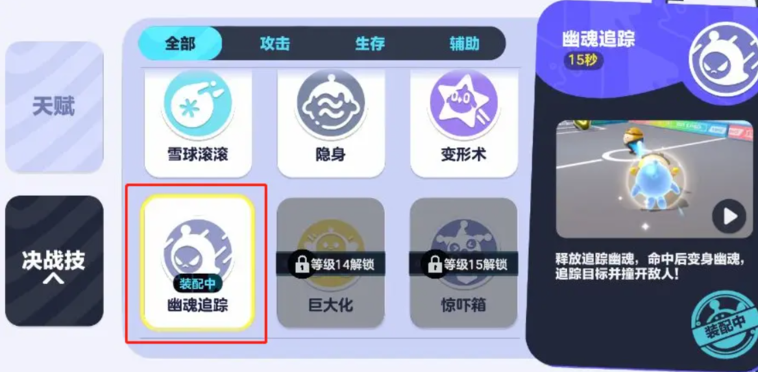 幽魂追踪拥有15秒的冷却时间,释放后会向指定目标发射一个幽魂标记,在接下来的5秒内再次激活技能,即可无视地形障碍直线冲向被标记单位,并对路径上的所有角色造成冲击位移效果。这一机制使其在追击、逃生和突破地形限制方面表现出色。