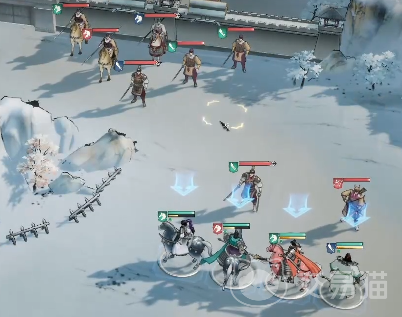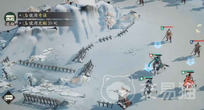 地图整体范围较大,但实际主要交战区域集中在右侧,左侧区域无需过多关注。值得注意的是右端设有特殊奖励目标,需完成四次属性克制并合理使用奇谋才能获取。开局时建议立即启用“一鼓作气”奇谋,此技能可为全队附加战意效果,使所有单位在首回合即可释放战法,抢占先机。同时,利用推荐阵容中的武将特性,轻松实现对敌方的有效克制。