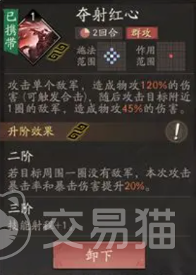 值得注意的是,“夺射红心”是一项极具战略意义的可选技能,尤其适合偏好射手流派的玩家。此技能不仅强化了夏侯渊对单一目标的杀伤力,还能附加范围伤害,并触发合击机制,从而弥补其在群攻方面的短板。后期若计划深度养成夏侯渊,则必须重点堆叠暴击相关属性,包括会心与运势,以确保输出稳定性。
