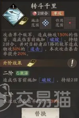 即便未来解锁双线技能树,初期也只能激活两个技能槽位,因此不建议全部配置为被动技。开局阶段可选用清兵类技能打开局面,若已选定骑兵分支并掌握“虎步无前”,则搭配“转斗千里”将进一步放大其追击优势。合理利用地形与走位,在最佳时机发起连续打击,是发挥该组合威力的关键所在。