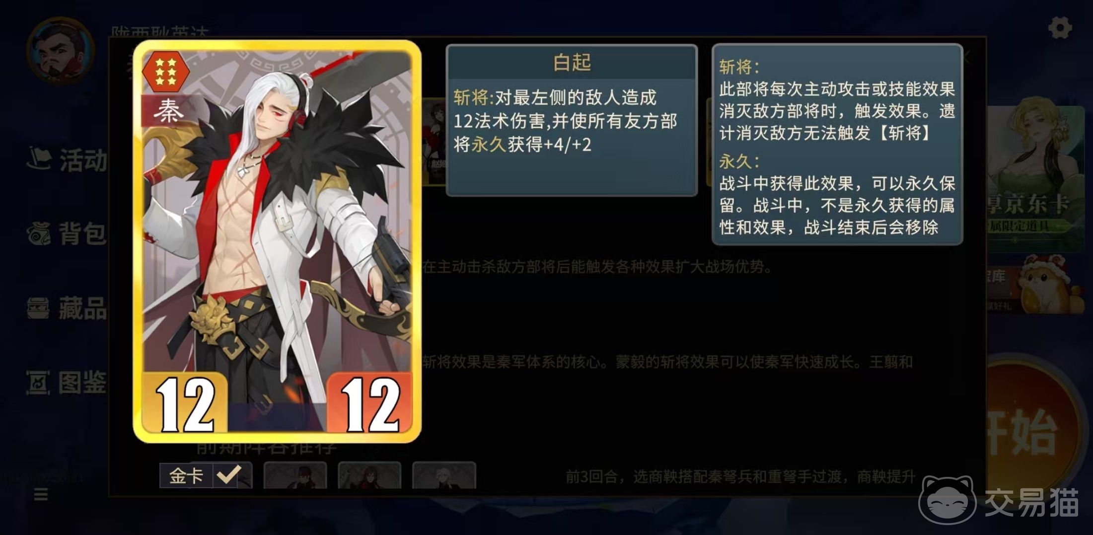 目前游戏中较为常见的流派包括秦阵营斩将流、汉阵营屏障流、唐阵营鼓舞流、妖阵营爆发流以及中立系通用玩法。其中,秦系以蒙毅、白起、王翦、商鞅和芈月为核心组件。商鞅与蒙毅提供斩将机制的基础支持,白起和王翦凭借高成长属性与爆发伤害实现战场清理,而芈月则能强化敌方单位死亡后触发的连锁斩将效果。整套体系可形成“斩杀—清场—再斩杀”的循环压制节奏,具备极强的持续压制力。