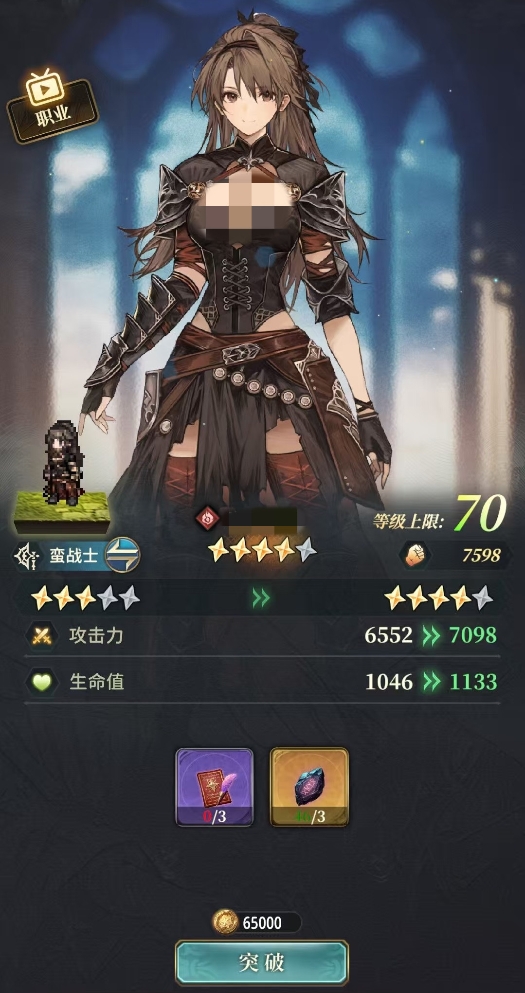 需要注意的是,不同职业在游戏进程中有各自的强势期。蛮战士虽在前期表现突出,但进入后期内容后输出乏力。因此建议在度过新手阶段并积累足够资源后,进行职业转型。法师职业是后期最优选之一,拥有全职业最高的爆发与持续伤害能力,在装备和等级成型后能打出极为可观的输出表现。主角升级与职业突破所需材料与其他角色一致,可通过常规副本刷取获取。职业解锁需在炼金炉中使用特定勋章兑换,如蛮战士勋章、骑士勋章、刺客勋章等。建议逐步将多个职业培养至满级,以便根据战斗需求灵活切换。