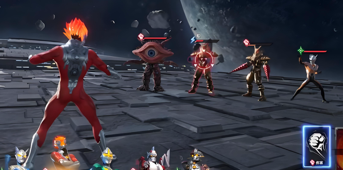 队伍搭配具备高度自由度,支持正义系与黑暗系角色混编出战,特定组合还能激活隐藏的阵营羁绊,带来额外属性加成。建议采用“1防御+1输出+1辅助”的标准配置,例如使用赛罗担任主力输出,佐菲承担前排抗伤职责,尤莉安提供治疗或增益支援,该体系兼顾生存能力与持续输出,适用于大多数关卡挑战。