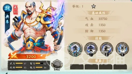 许褚:这位武将是新手阶段通过签到奖励或者新手招募池即可获得的前排角色,非常适合初期使用。基础生命值与防御属性较为突出,能有效承受前期关卡带来的伤害压力。其技能可对敌方单位附加寒冷状态,配合魏国体系中的郭嘉时,能够稳定触发冰冻控制效果,形成良好的控制链。即使进入游戏中期,依然具备不错的站场能力,无需急于替换,节省培养资源。