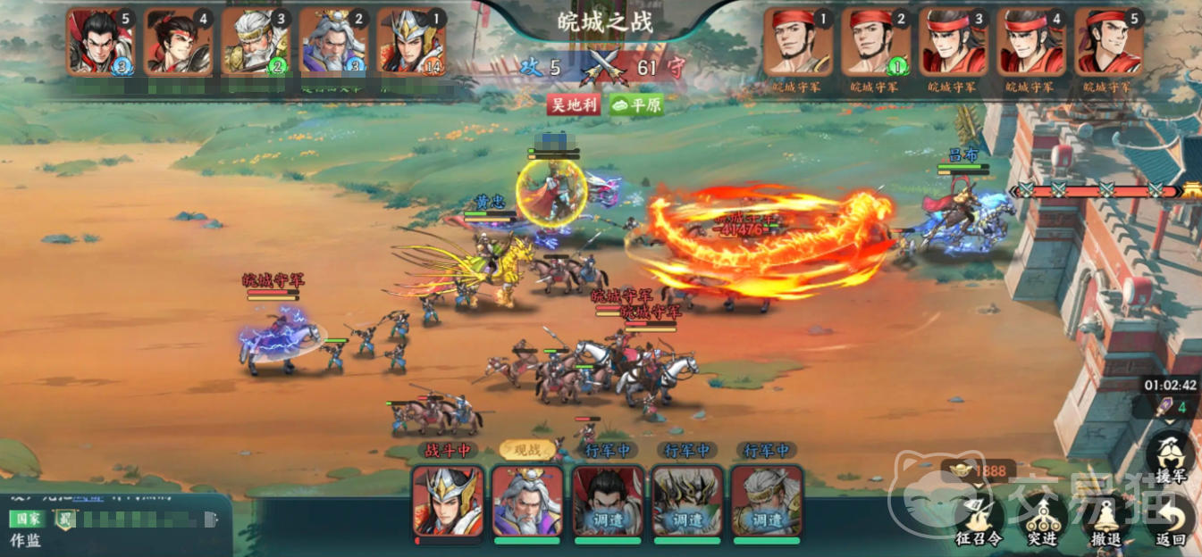 夏侯惇为骑兵单位,怒气释放可造成高额单体或范围伤害,并附带寒冰标记。其被动特性使得他对已被寒冰控制的目标造成更高伤害,极大提升了爆发潜力。在集火关键目标时表现尤为突出,是突破敌阵的重要利器。