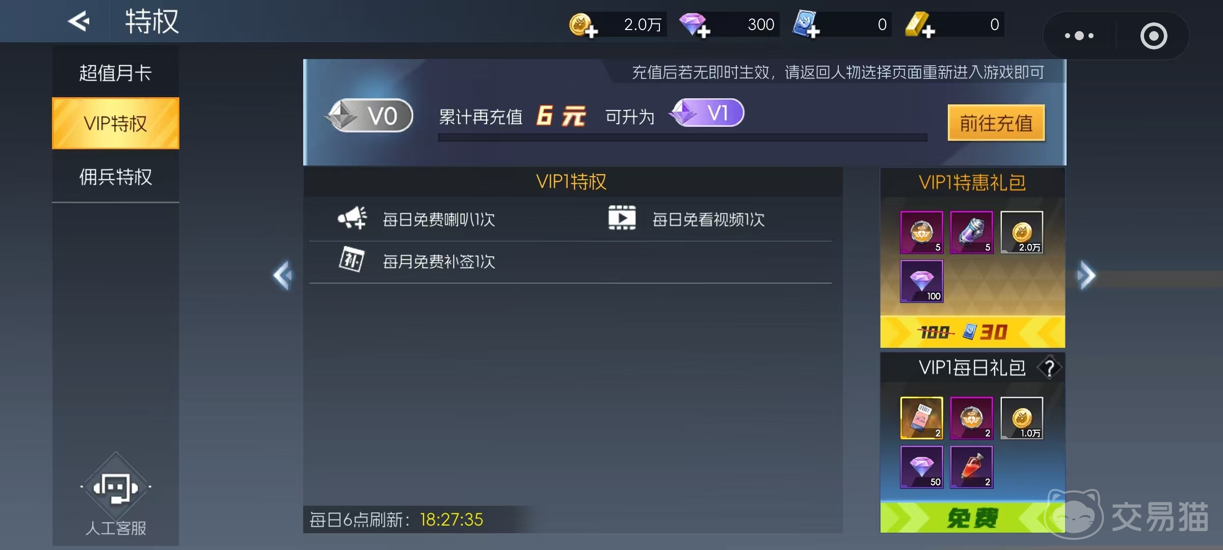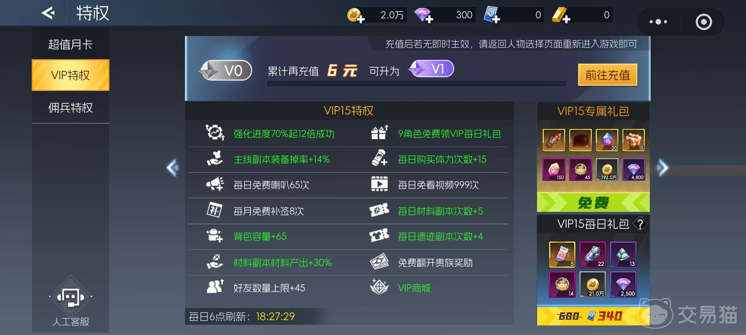 进入游戏后,玩家可在界面左上角找到特权入口。当前特权主要分为三类:超值月卡、VIP特权以及佣兵特权。首先来看超值月卡部分,其下细分为特惠周卡、畅玩月卡与超级月卡。购买特惠周卡后,每日可领取双倍挑战券及强化保护剂;开通畅玩月卡,则每天能获得200深渊卷和黄金体力药水;而解锁超级月卡后,不仅能启用自动战斗功能,还能使史诗装备的掉落概率提升10%。
