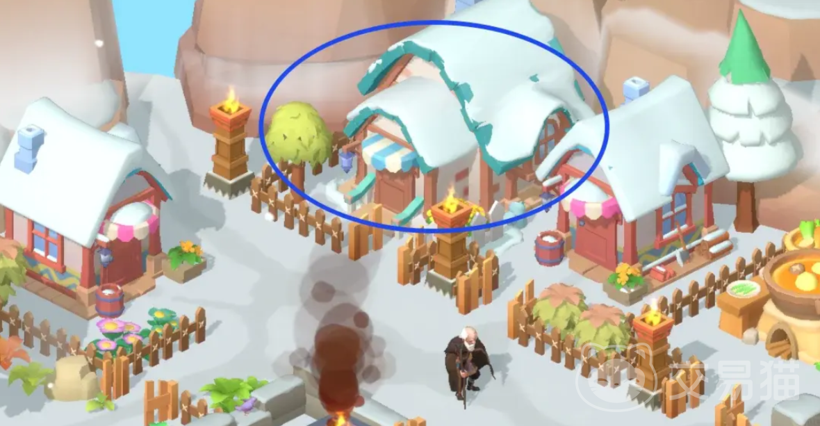 接下来前往冬木岛,该区域被皑皑白雪覆盖。修复此处损毁的建筑设施可额外获得火炬道具。沿主路前行,沿途每一栋房屋都支持点击互动,成功操作后将给予金币回馈。向左行进途中,留意地面生长的一株四季花,采集完成后携带至海岸边的小屋交付任务,即可领取稀有秘宝作为奖励。最后抵达岛屿中心地带,此处设有一处池塘,点击其中不断浮动的绿色精灵生物,即可获得对应奖励。