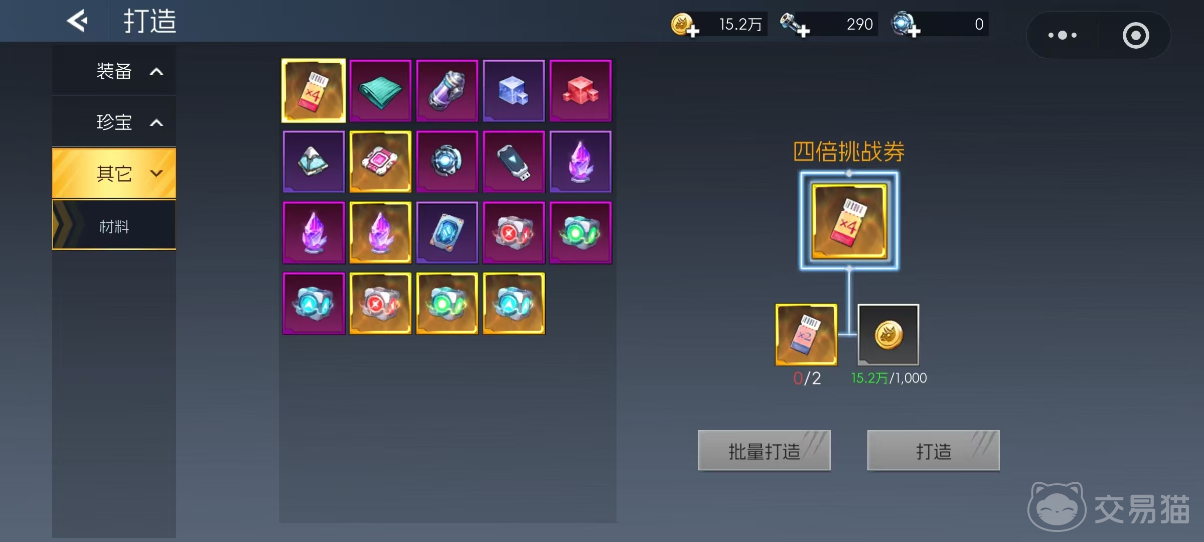 珍宝打造涵盖锋牙、肩甲与奇物三类,每种类型对应不同的战斗增益效果。制作任意一种珍宝均需收集指定材料,这些材料通常来源于“逃生之路”等限时副本活动。成功洗炼出理想特性后,可在挑战高难度BOSS时显著提升输出或生存能力,成为后期战力突破的关键助力。最后一类为其他功能性材料的合成,如四倍挑战券、高级强化纤维、强化保护剂和高级变换物质等。其中,四倍挑战券由两张双倍挑战券加金币合成,高级强化纤维则需消耗普通强化纤维与金币升级获得。这些高阶材料在高端装备打造过程中具有不可替代的作用。