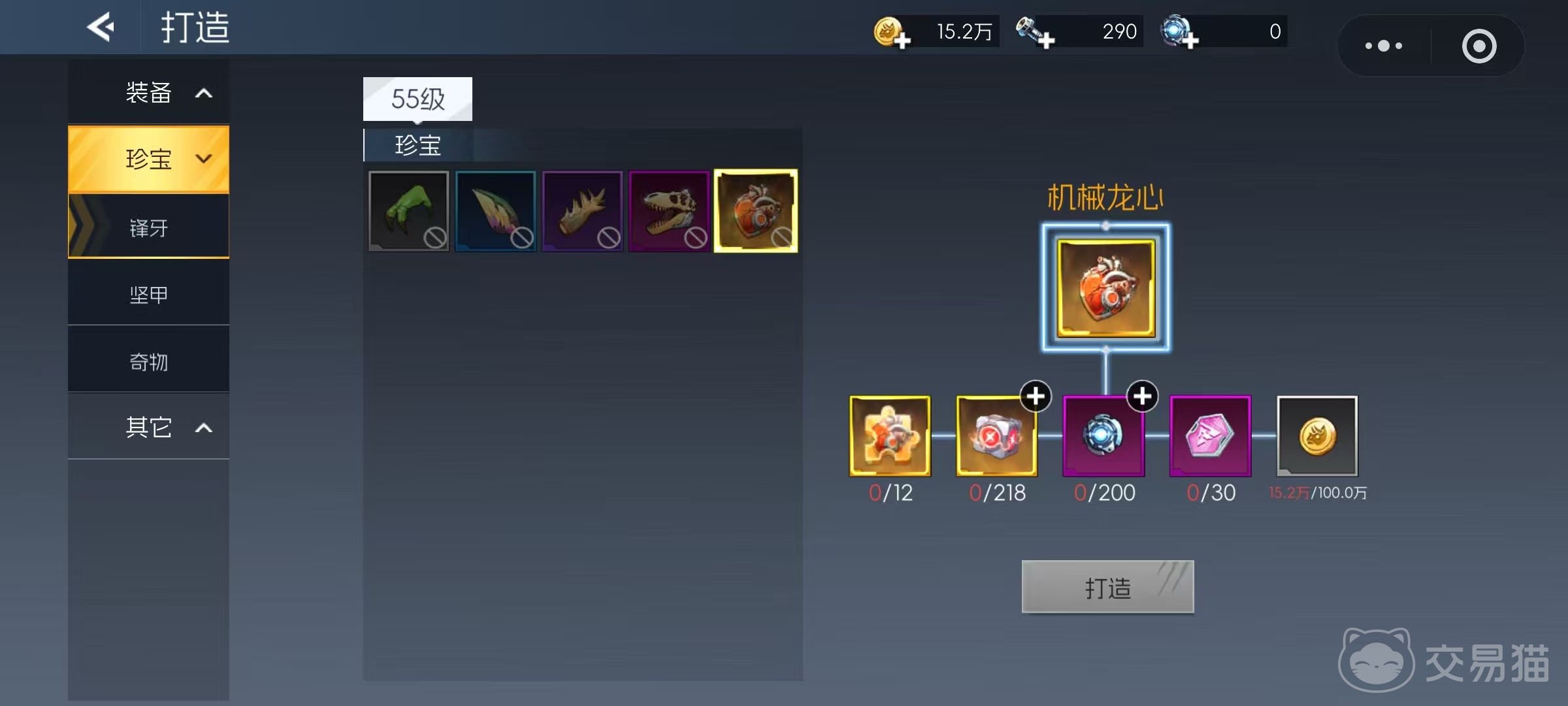 解锁打造功能后,玩家可点击游戏界面右下角的“变强”图标进入相关页面。请注意,打造与改造为两个独立模块,操作时需注意区分。打造主要分为三大类别:装备、珍宝以及其他材料类物品。首先来看装备打造,包含武器、防具和饰品三种类型。普通打造仅需常规材料即可完成,而远古打造则需要稀有资源支持。例如,龙之巢穴掉落的天空之源、始源龙骸,以及遗迹宝库产出的精粹钢,都是进行高级装备打造不可或缺的关键素材。