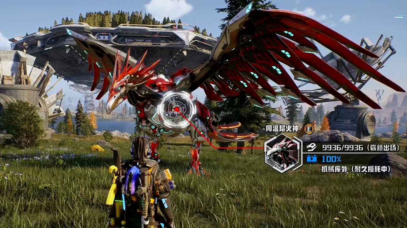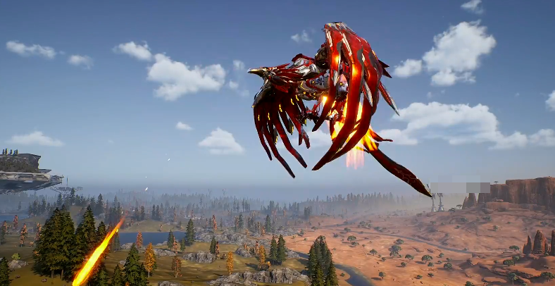 此外,火神还具备类似战略轰炸机的能力——可通过展开双翼投下高爆型弹药,爆炸覆盖范围广泛,具备强大破坏力。一旦成功捕获并完成驯化流程,玩家即可操控该单位执行空中打击任务。更值得一提的是,火神支持多名角色共同搭乘,堪称一座可飞行的移动堡垒。