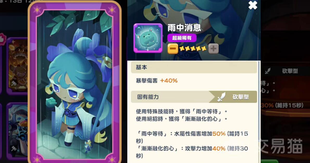 要想实现最高输出效率,必须确保蓄力攻击准确命中敌人以叠加层数,叠满五层后攻击力翻倍,持续时间为15秒。推荐连招顺序为:起手蓄力→衔接黑暗剑击→释放必杀技。在BOSS战开始前,建议提前3秒开启蓄力以快速启动层数累积。法宝卡推荐选择“雨中消息”,可在蓄力命中时额外提升25%暴击伤害。阵容搭配方面,建议配合白玉草饼干提供治疗支持,以及牛奶饼干提供的护盾保护。虽然理论上全输出配置效率更高,但在缺乏辅助的情况下难以稳定叠层,因此合理的队伍构建至关重要。培养优先级应为:先升级技能,再强化法宝,最后提升等级,重点优先升级“奔流激浪”与“波涛奔腾”两个核心技能,精准掌握蓄力时机,避免层数中断。尽管操作有一定门槛,但熟练掌握后,鸢尾花饼干将成为团队中最核心的输出担当。