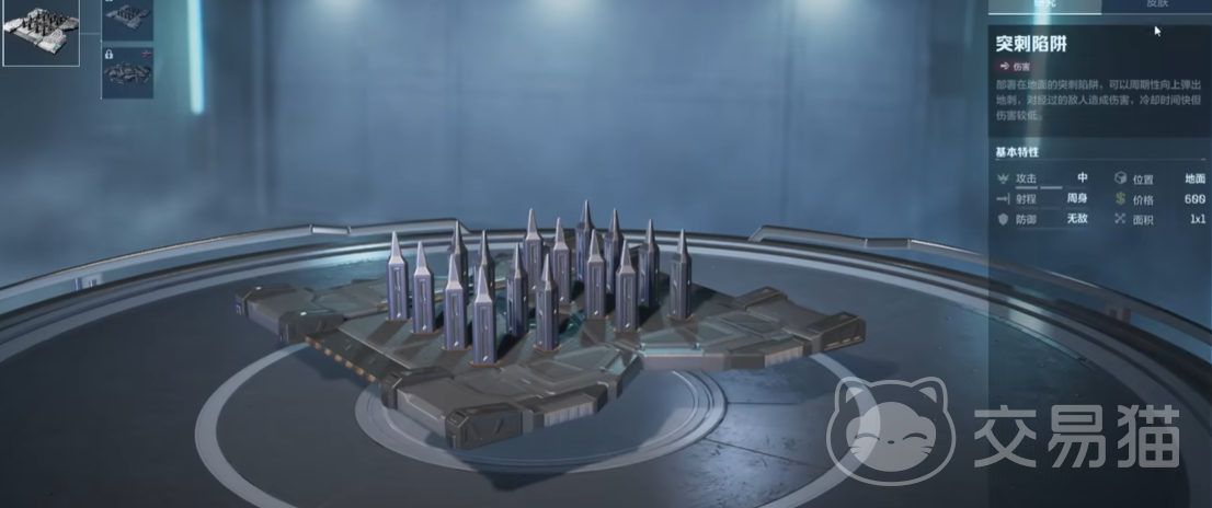 属于周期性伤害型陷阱,部署后会定时从地面伸出尖刺,对途经敌人造成持续性物理打击。虽然单次伤害偏低且清怪效率有限,但由于冷却时间短,适合与其他控制类陷阱搭配使用,形成复合型防御体系。