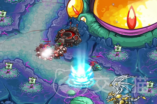 第三种为奥术巫师塔,属于高爆发魔法塔,能够释放强力光束造成巨额魔法伤害,面对非BOSS类敌人时常有秒杀效果,清场速度极快。同时,该塔附带增益光环,可提升范围内所有己方单位的攻击力与技能伤害,兼具输出与辅助双重价值,战略地位突出。