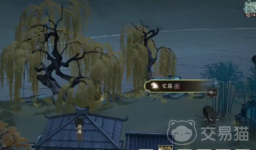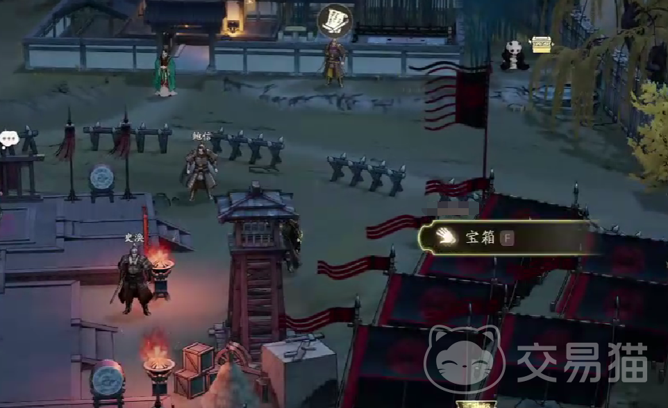 第三个为NPC赠送类宝箱,首次与夏侯惇交谈时,他会主动赠予一个宝箱,内含聚才玉的概率掉落。府库旁的柳树背后也藏有一个宝箱,需绕至树后方可发现。
