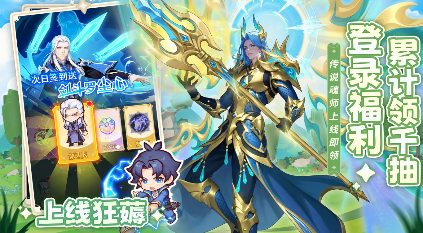 对于已参与过预约的玩家,在正式开服后登录即可在邮箱中领取专属预约回馈——十枚招募水晶,助力开局抽卡。此外,新手七日签到活动也十分丰厚,第二天签到即可获得金色品质魂师【剑斗罗尘星】,该角色具备出色的输出能力,适用于多种主线关卡挑战场景。