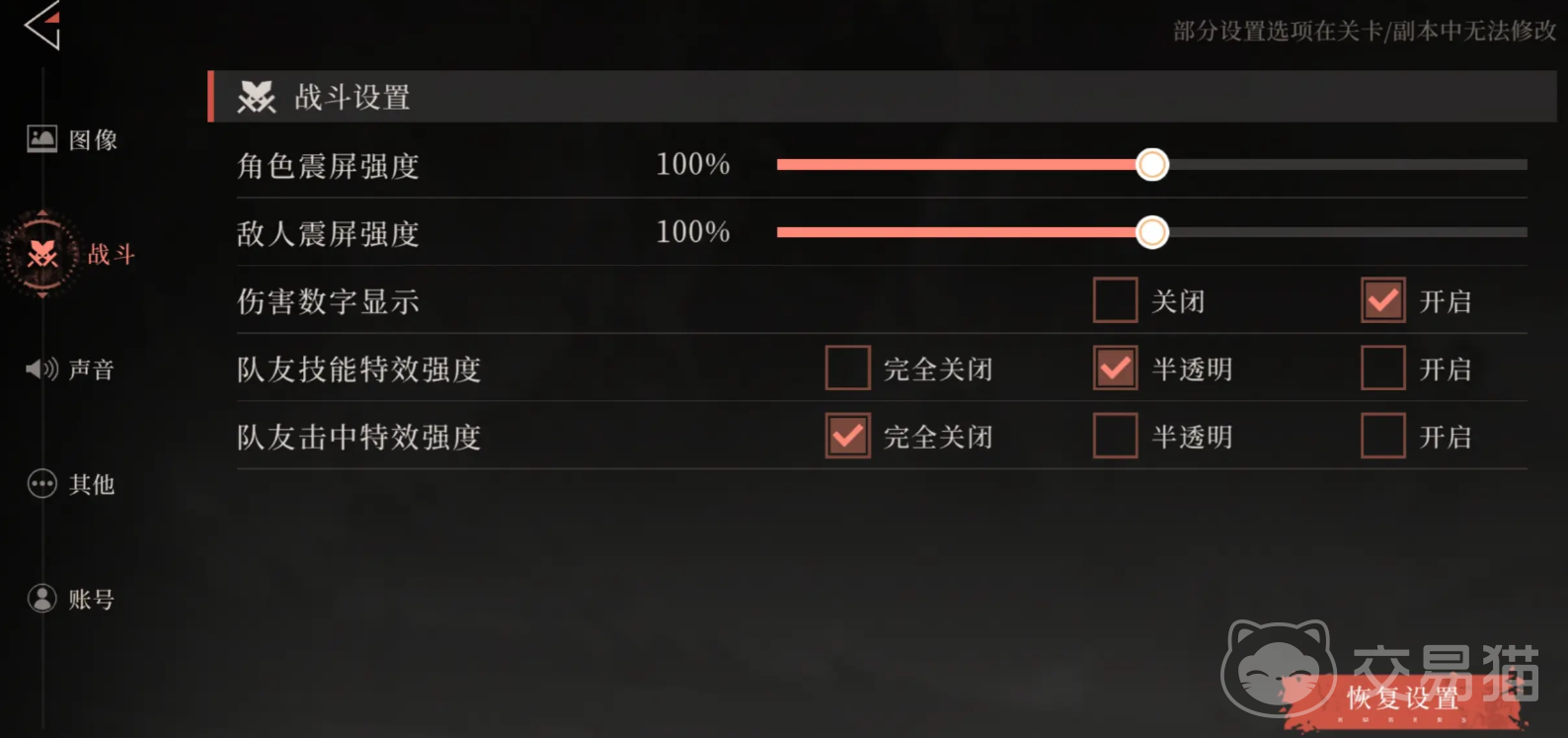 进入战斗设置选项后,建议调低角色及敌人的画面震动强度,以便更清晰地判断技能释放时机和顺序。同时开启伤害数值显示功能,有助于实时掌握暴击触发频率和伤害反馈。
