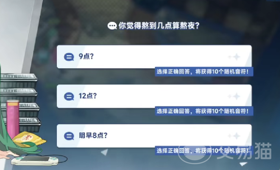 至于“你觉得几点才算熬夜?”,标准答案设定为:“十二点。”