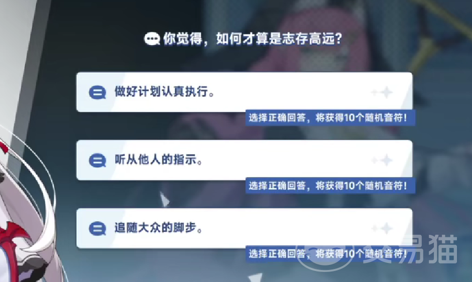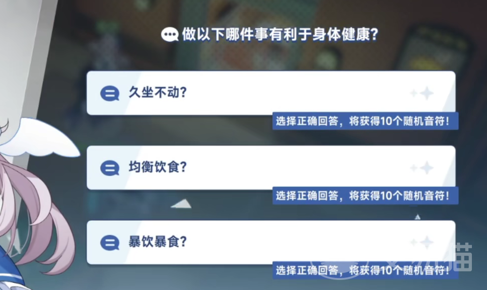 这类选择题主要出现在“星塔探索”与“主线剧情”环节中,每次触发后会提供三个选项供玩家选择。答对可获得音符、资源道具等奖励,而错误回答则可能导致生命值下降或幸运值降低等负面状态,这些debuff会对后续挑战造成不小影响,因此掌握正确答案尤为重要。