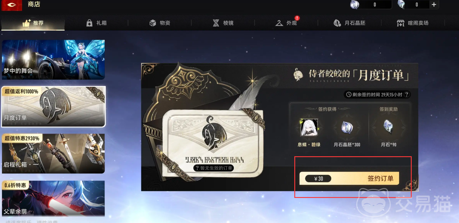 第二类是资源型付费项目,包含月卡、战令以及启辰礼包。购买月卡后,玩家可立即领取300月石晶胚与“息碟.碧绿”,之后每日签到还可额外获得90月石晶胚,在整个月卡周期内总计可收获不少于3000个月石晶胚。
