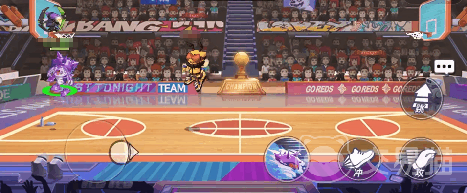 游戏中,角色的移动由左侧虚拟摇杆控制,未设置独立加速键,需通过冲刺功能实现快速位移。跳跃操作分为轻点触发小跳,连续点击或长按则执行高跳,适用于拦截高空传球或干扰投篮动作。需要注意的是,当角色持球状态下,无法连续两次使用高跳动作。