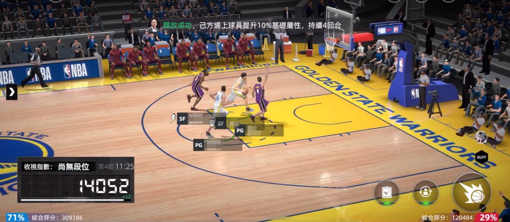 在技能机制方面,“飞天遁地”展现出极强的实战价值。使用该技能后,下一次出手必定转化为上篮动作,并触发“上篮提升”效果,显著提高命中率的同时还能降低对手的防守强度。结合其顶级的突破性能,非常适合用于快速切入内线制造杀伤,尤其在快攻反击场景中能发挥出极高的战术效率。