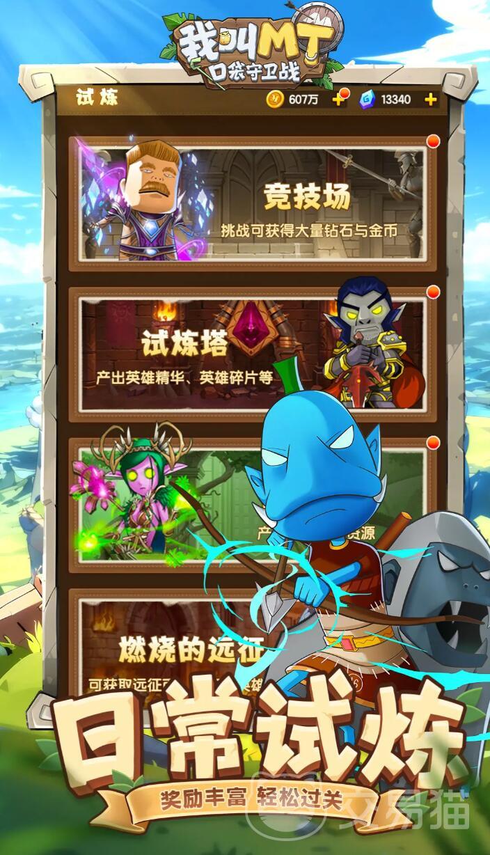 除了主线塔防关卡外,游戏还提供了多样化的玩法模式,包括试炼塔、竞技场、燃烧的远征以及熊猫人之谜等特色系统。这些内容不仅丰富了游戏进程,也为玩家带来持续挑战的乐趣与资源获取途径。